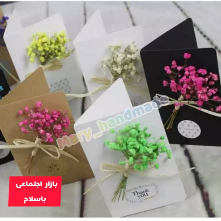 کارت پستال و تبریک مناسبتی دستساز با مقوای فابریانو کاهی مات و براق بهمراه گلهلای خشک طبیعی